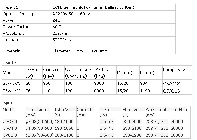 Quartz Germicidal Lamps are low pressure lamps that generate most of the energy at 254nm (253,7nm - Mercury line) and some energy at 185nm. In medical terminology they are known as UV-C lamps. The mechanical structure of a germicidal lamps is the same as for a Miniature Cold Cathode Florescent Lamp but instead glass the envelope is manufactured with quartz. At these wavelength the most bacteria, spores and viruses are complete destroyed.